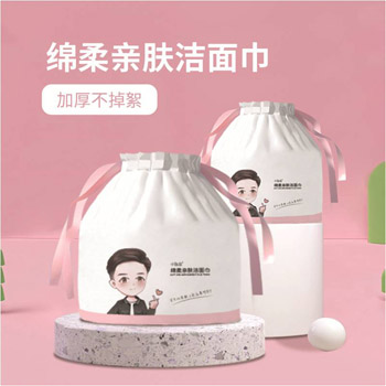 “小包總”牌親膚潔面巾 規(guī)格:200mm*200mm*60片 克重:75g/m2 成分:100%再生纖維素纖維