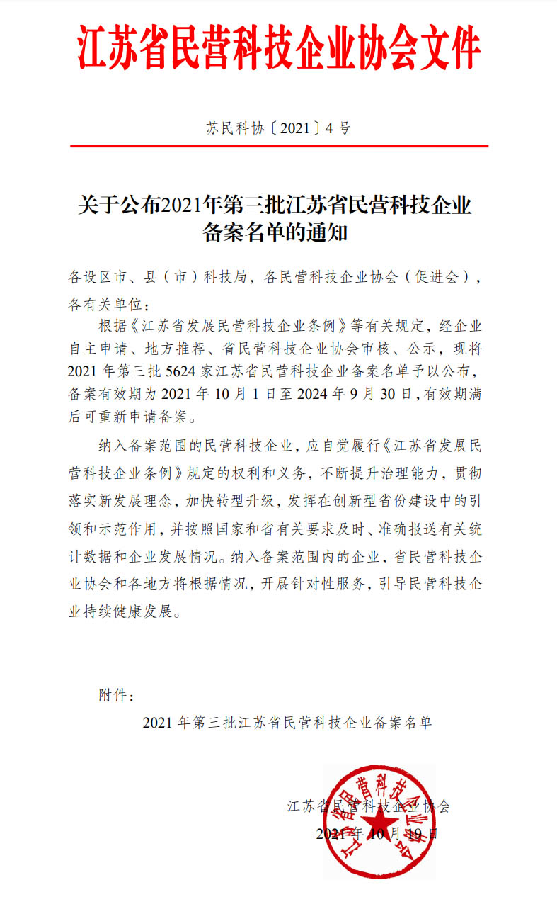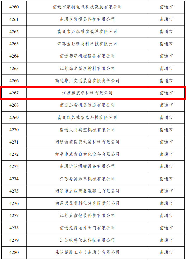 江蘇啟宸新材料有限公司評(píng)為江蘇省民營(yíng)科技企業(yè)