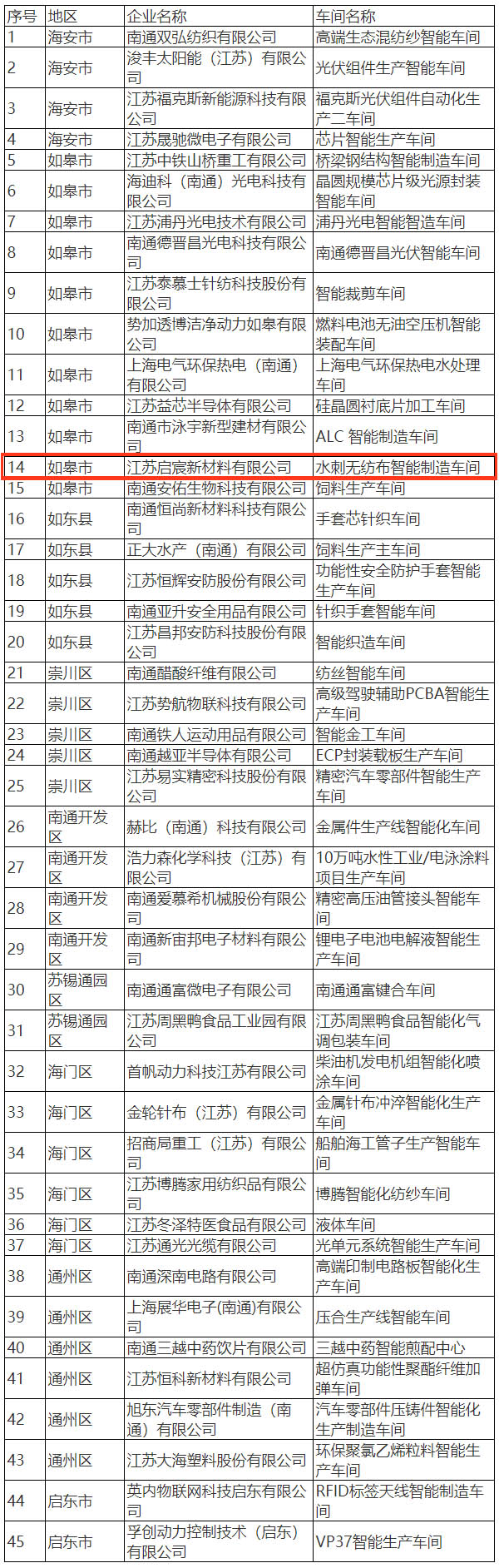南通市人民政府辦公室關(guān)于發(fā)布第七批南通市示范智能車間名單的通知
